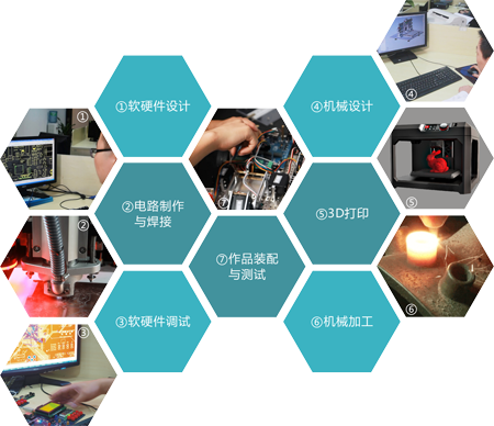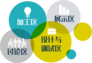 2、创意实现:提供软、硬件设计环境(开源软、硬件),电子产品制作,机械加工,测试、装配、调试等工具,可完成整个创意作品;
