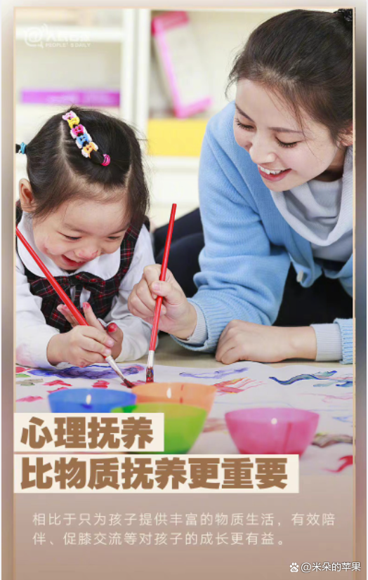 相比于只为孩子提供丰富的物质生活,有效的陪伴、促膝交流等对孩子的成长更有益。